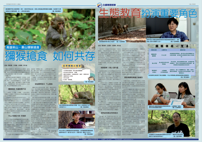 首頁銘報周報銘報永續專題特刊-臺灣獼猴... 銘報周報 銘報永續專題特刊-臺灣獼猴擾民 NCC公布延長補助廣電媒體協助政府發送防疫訊息1年。(圖/截自NCC yt頻道) 記者: medianews0904 2024-06-24 474 0 本報訊 鄰近高雄柴山、壽山的中山大學旁,當地居民與學生長年與臺灣獼猴的活動空間重疊,2023年底時更頻繁出現臺灣獼猴因搶食而攻擊民眾的事件,躍上新聞媒體,人猴衝突似乎頻繁上演。 臺灣獼猴是臺灣特有種動物,也是唯一的靈長類野生動物。2018年,林務局判定獼猴數量趨於穩定,於是將臺灣獼猴從「保育類」調降為「一般類」動物。儘管獼猴已不屬於保育類動物,但仍然受到《野生動物保育法》的保護,禁止民眾隨意捕殺及飼養。 銘報特刊下載 FacebookTwitterWhatsAppEmailPrintCopy URL 前一篇文章銘報2244期出刊下一篇文章銘報永續專題特刊-大學生請心理假是藉口?盼社會共創友善校園 相關文章 銘報周報 銘報2222期出刊 銘報周報 銘報2226期出刊 銘報周報 銘報2229期出刊 發表評論 Cancel reply 留言: Please enter your comment! 名字* Please enter your name here Email:* You have entered an incorrect email address! Please enter your email address here 網站: 在此瀏覽器中儲存我的名字、電子郵件和網站,以便下次評論時使用。 熱門文章 專題 【二輪戲院發展現況】地理位置佳CP值高 4間戲院營... 新聞 中天主持人平秀琳轉戰東森 主持新節目《平論無... 新聞 2019 hito流行音樂獎跨媒體轉播 新聞 TXO戰隊轉型 暫別2020職業聯賽 人物 中天主播李珮瑄:勇於在安逸中追求新鮮感